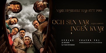 Och sen var ingen kvar, en av Agatha Christies mest kända mordmysterium kommer nu till Teater TRE! Teater LUMA gästspelar under Halloween, följ med på en riktig rysare för hela familjen.