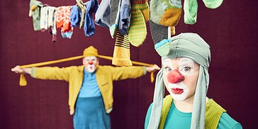 En trumpen liten clown skall ta ner strumpor från klädstrecket alldeles själv, det är faktiskt mycket svårare än man kan tro. Som tur är kommer hjälp från oväntat håll, en Strumpängeln uppenbarar sig. Den ser inte alls ut som en ängel vid första anblick och verkar inte ens ha några vingar...
