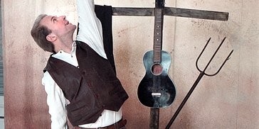 Lars Hjertner spelar tillsammans med en fiol och en gitarr alla rollerna i detta humoristiska drama!