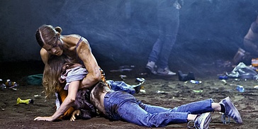DRAG LIGHT DISTRICT sker i hörnet mellan strippklubben och drag king-showen. Föreställ dig faktiskt ett hörn på en dåligt upplyst gata, där en gammal gift man tar ut pengar från bankomaten medan en grupp queers står på andra sidan vägen och röker, skrattar och flirtar, och du kan höra en heavy metal-låt komma någonstans ifrån. Genom ett retfullt dynamiskt spel frigör Sarah och Mariê sina queera begär, växlar mellan rockstjärnor och rockstjärnor. I denna performance utforskar de sina erfarenheter och fantasier kring striptease och drag, navigerar den gemenskap som formas i dessa miljöer, förhandlar om gränser, lever drömmen, känner smärtan, helar trauman samtidigt som de skapar nya, blottar sig själva och tjänar stålar.