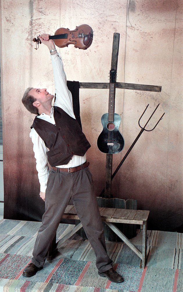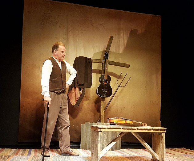 Lars Hjertner spelar tillsammans med en fiol och en gitarr alla rollerna i detta humoristiska drama!
