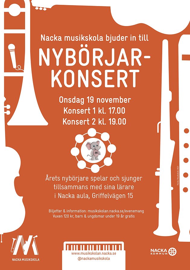 Här hälsar vi alla våra nya elever välkomna till Nacka musikskola i två hejdundrande konserter där de uppträder tillsammans med sina lärare.
