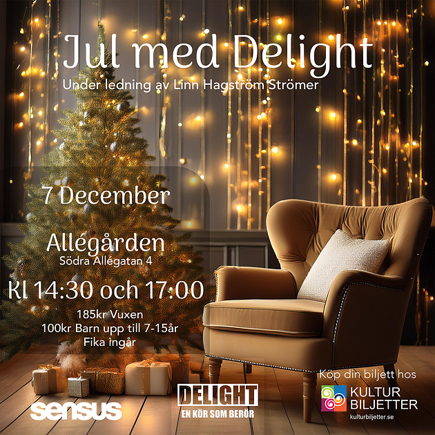 Kom i julstämning med kören Delights finstämda och varma julkonsert. Vi bjuder på allt ifrån klassisk julmusik till lekfulla låtar och modernare musik. Fika som ingår i priset avnjuts tillsammans med underhållning i en familjär och julig miljö.