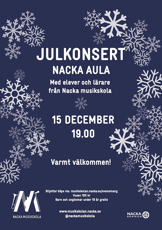 Välkommen till stämningsfull julkonsert med elever och lärare i Nacka musikskola!