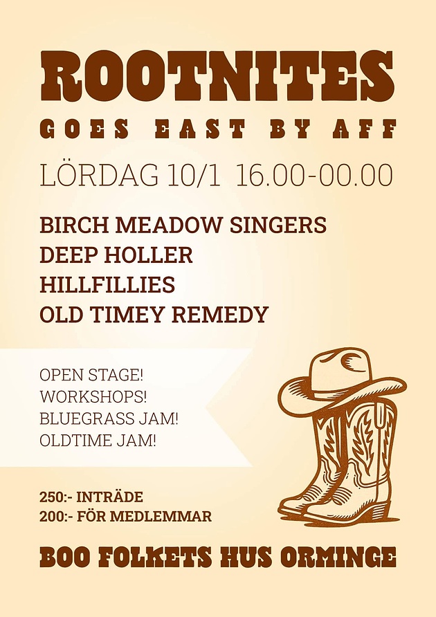 "Rootnites goes east by AFF" och kommer att köra en heldagsfestival i Boo folkets Hus, i Orminge!