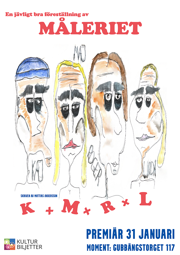 Om du föredrar Ibsen eller O’Neill på Dramaten, så är Måleriets tolkning av 90-tals pjäsen “K+M+R+L” inget för dig. En explosiv berättelse som ger inblick i fyra unga människors liv, drömmar, frustrationer och ensamhet. En feberdröm som rör sig i tid och rum. Mellan våldsamma uppgörelser, komvux-kurser i tyska och mirakel på Systembolaget.