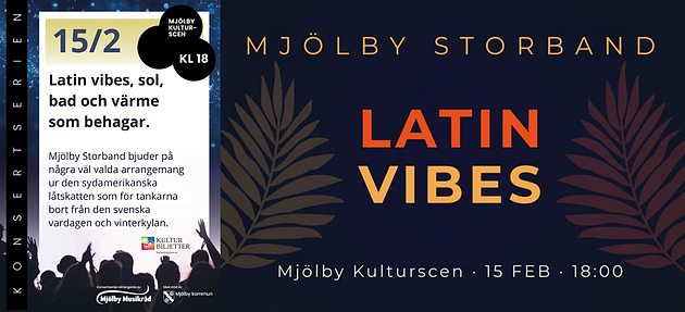 Latin vibes, sol, bad och värme behagar de flesta men känns väldigt avlägset i vårt nu så vinterkalla land. Mjölby Storband bjuder därför på några väl valda arrangemang ur den sydamerikanska låtskatten som för tankarna bort från den svenska vardagen. Några låtar du säkerligen känner igen och några du säkerligen upptäcker, eller kanske återupptäcker? Välkommen in i värmen, kom och låt dig inspireras!