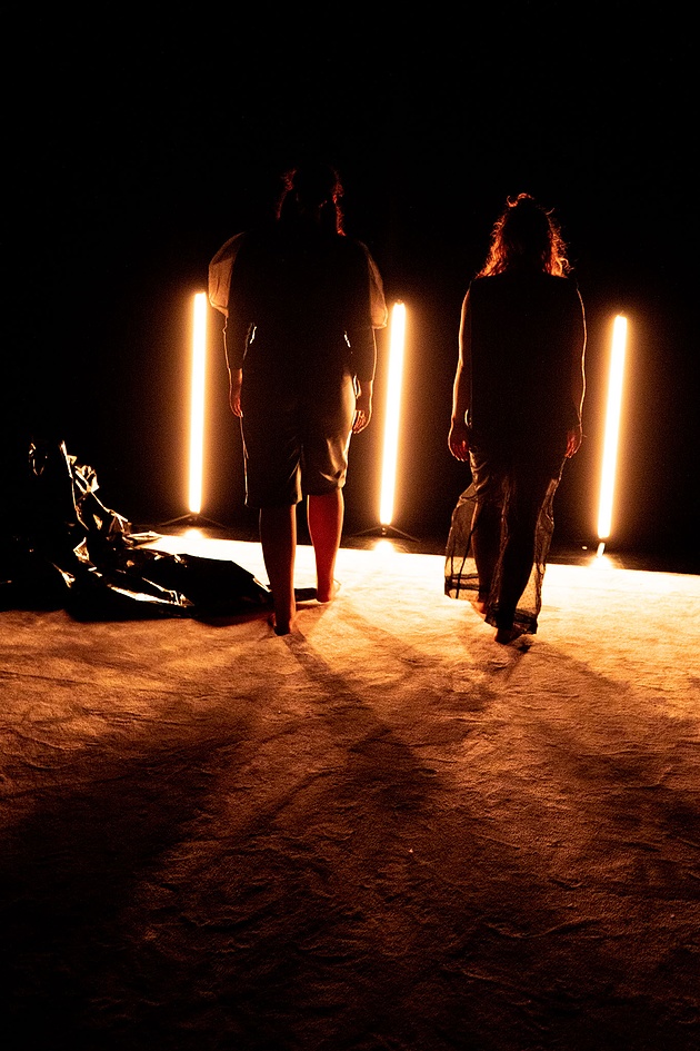 Rörelse och ljus flyter samman i stundtals berättande, stundtals performativa stämningslandskap.