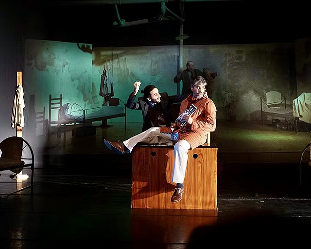 On screen, fragments of the lost performance flicker; on stage, actors struggle to reclaim those moments. Out of this tension emerge confessions from artists whose voices and identities face erasure, weaving their own biographies with Mrożek’s themes of exile, displacement, and the endurance of Palestinian theatrical memory.
