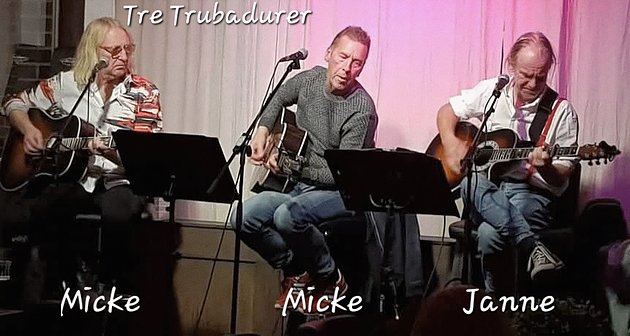 Tre trubadurer är Mikael Lindström, Micke Lorentzson och Janne Jonsson.