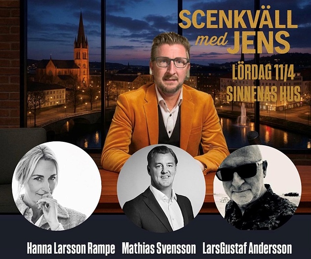 Missa inte att boka lördagen den 11/4 för Borås mest efterlängtade scen-talkshow hos oss på Sinnenas Hus – Scenkväll med Jens!
