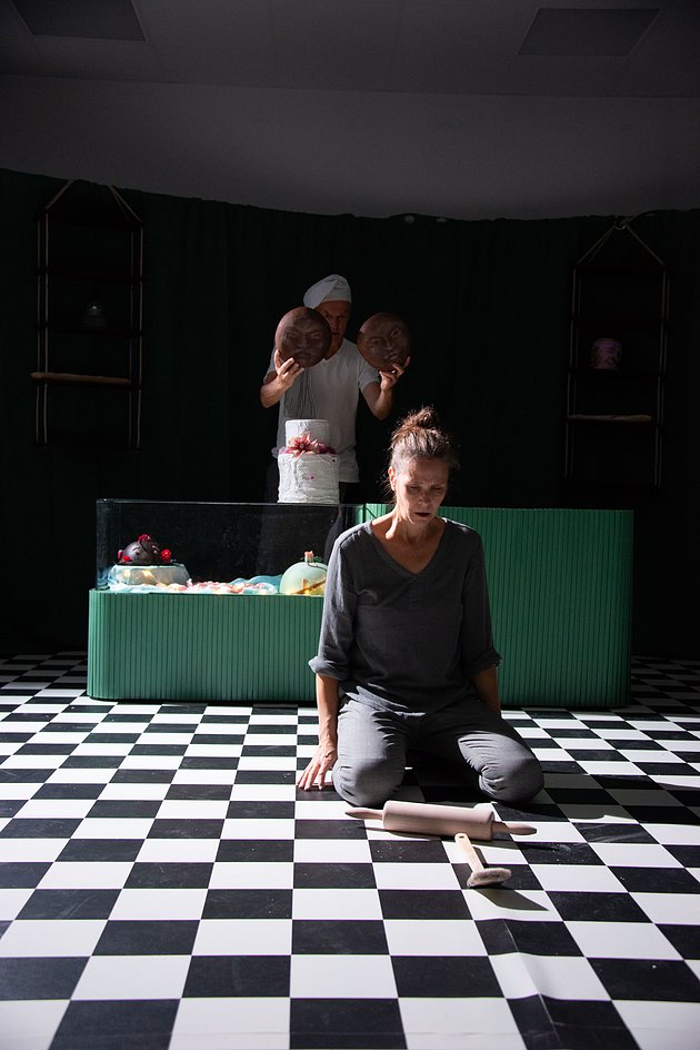 Bullekungen är bagarnas bagare, bullarnas härskare. När publiken kliver in i konditoriet doftar det av kanel, kardemumma, smör och socker. Det serveras bullar och saft. Det doftar av trygghet och värme. Men en dag kommer en ny besökare. Eller en gammal bekantskap. Någon Bullekungen helst hade glömt. Mitt i mjölet, degen, bullarna, kakorna börjar de minnas.
