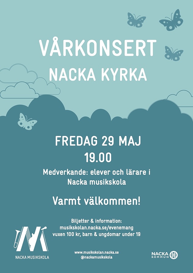 Välkommen till Vårkonsert i Nacka kyrka med elever och lärare från Nacka musikskola!